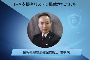 - IPA「中小企業向けサイバーセキュリティ対策支援者リスト」に弊社代表「浦中 究」が掲載されました